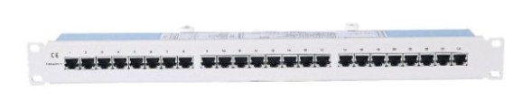Patch panel 19 cali, o wysokości 1U, z 24 portami, okablowaniem typu FTP/STP (ekranowana skrętka 4 parowa).