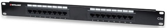 Panel wyposażony w 16 portów. Kategoria okablowania to 5e.