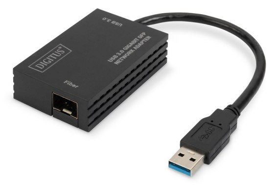Adapter sieciowy wyposażony w interfejs USB 3.0. Produkt posiada złącze SFP.