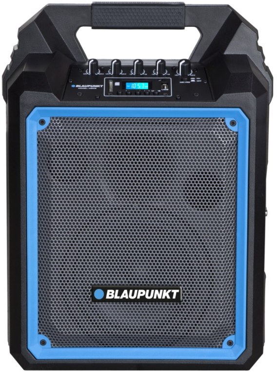 Głośnik bezprzewodowy do karaoke. Moc: 500 W. Odtwarzanie plików MP3/WMA. 6-kanałowy equalizer. Tuner FM z pamięcią 99 stacji. Czytnik kart SD do 32 GB. Port USB. Czas pracy: 3.5 h. Czas ładowania; 5 h. Mikrofon oraz pilot w zestawie. Wymiary: 31 x 41.8 x 20.3 cm.