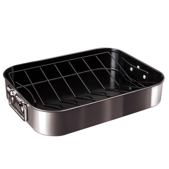 Brytfanna do przygotowywania w piekarniku wszelkich pieczeni, ryb, warzyw, frytek oraz zapiekanek. W zestawie dodatkowy ruszt, na którym możemy położyć pieczeń aby nie dotykała bezpośrednio do dna brytfanki. Dzięki temu tworzy się cyrkulacja gorącego powietrza wokół całego dania. Ruszt może służyć także do piętrowego pieczenia dwuskładnikowego dania np. mięso i warzywa czy ziemniaki.