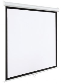 Ciężar powierzchni projekcyjnej: 500 g/m2, Kąt widzenia: 130 stopni, Materiał 3 warstwowy odporny na zabrudzenia; niepalny, Materiał wykonania obudowy: Metal, Wymiary czarnej linii: 4 cm po bokach; 5 cm na dole, Sposób lakierowania: Proszkowo