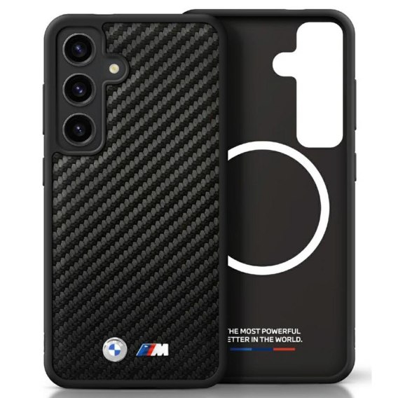 Etui BMW Leather Carbon MagSafe do Samsung Galaxy S25+ czarny