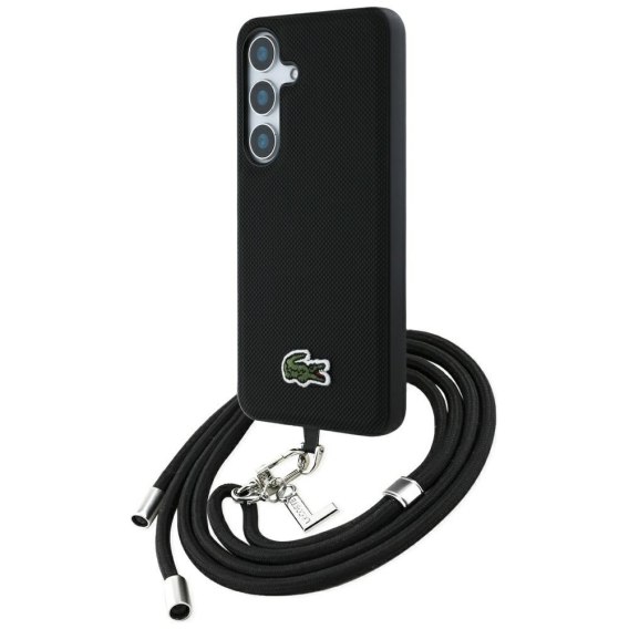 Etui Lacoste Iconic Petit Pique Woven Logo CBDY Strap MagSafe do Samsung Galaxy S25 czarny
