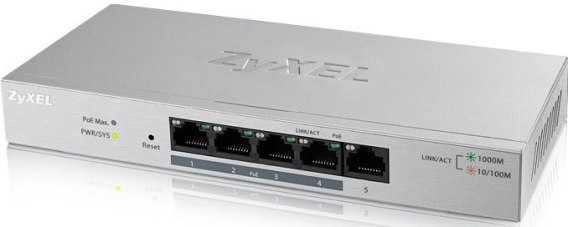 Przełącznik o prędkości magistrali wynoszącej 10 Gbps, wyposażony w 5 gniazd sieciowych 10/100/1000 Mbps. Urządzenie posiada tablicę adresów MAC o pojemności 2000 pozycji.