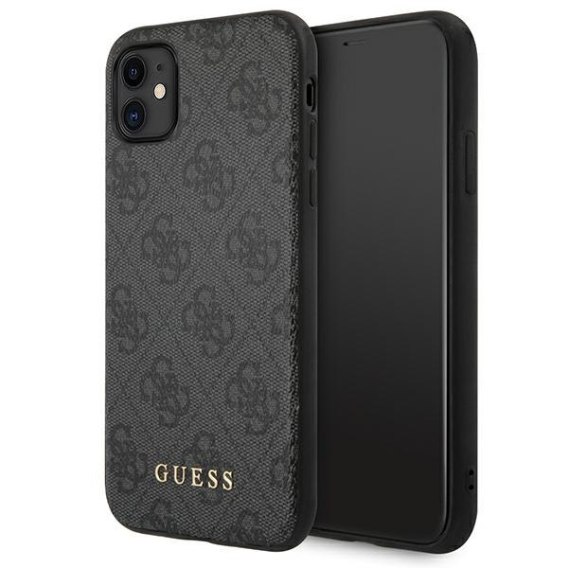Guess GUHCN61G4GFGR iPhone 11 6,1" szary/grey hard case 4G Metal Gold Logo