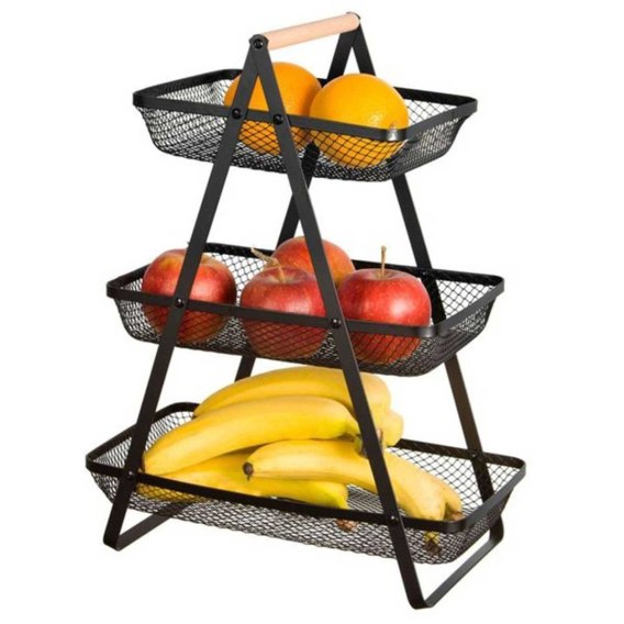 Trzypoziomowy koszyk na pieczywo, owoce lub warzywa warzywa w stylu loft. Wykonany z metalu. Znajdzie zastosowanie w każdej kuchni ale równie pięknie będzie prezentował się w jadalni czy salonie. Posiada wygodny uchwyt ułatwiające przenoszenie.