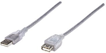 Kabel ze złączem USB typu A męski oraz A gniazdo marki Manhattan o długości 1.8 m. Przewód USB w pełni kompatybilny z USB 2.0. Prędkość przesyłania danych do 480 Mb/s.
