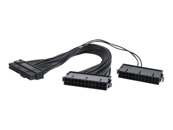 Przedłużacz kabla zasilającego o długości 30 cm, zakończony złączami Wyjściowe główne 24 piny - męski z jednej strony oraz złączami Power 24 pin ATX - żeński i Power 24 pin ATX (2 wires) - żeński z drugiej.