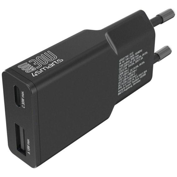 Ładowarka sieciowa 4smarts FlatPlug Duos 30W GaN USB-C/USB-A czarny