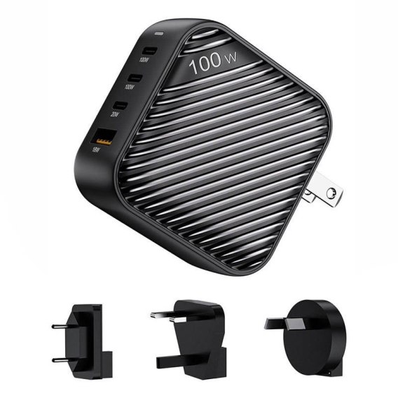 Ładowarka sieciowa INVZI GanHub 3x USB-C + USB, 100W, EU/UK/AU/US (czarna)