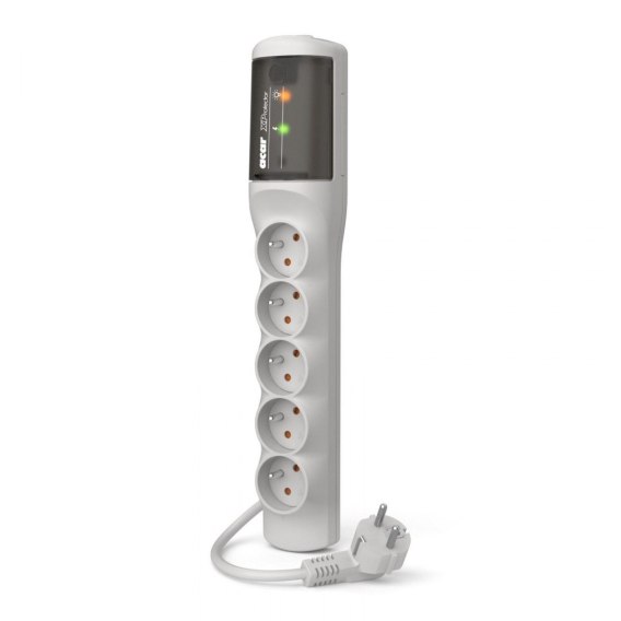Informacje dodatkowe: Dopuszczalne obciążenie: Pmax 2300W, Poziom protekcji Up: <=1,3kV, Znamionowy prąd wyładowczy i n: 2kA (L/N) - 8/20µs, Maksymalny prąd wyładowczy i max: 6,5kA (L/N) - 8/20µs, System ochrony przeciwporażeniowej: kołki ochronne gniazd połączone, z przewodem ochronnym, 5 gniazd dwubiegunowych ze stykiem ochronnym 10A/250V, Dwutorowy wyłącznik podświetlany, Obudowa z tworzywa sztucznego samogasnącego, Wymiary: 365 x 65 x 52 mm, Ciężar: 0,5 kg