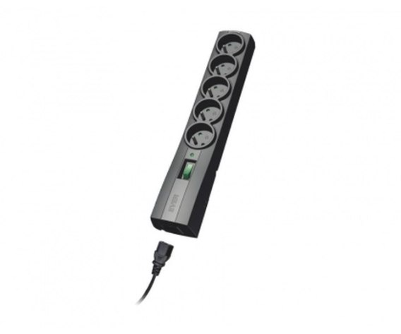 Listwa zasilająca z 5 gniazdami sieciowymi z bolcem uziemiającym, wyposażona w bezpiecznik 10A/250V oraz podświetlany włącznik. Długość przewodu wynosi 2 m.