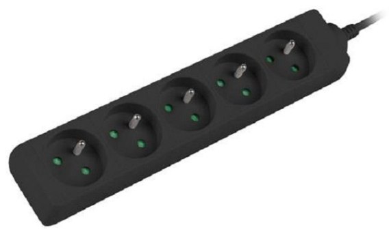 Listwa zasilająca z 5 gniazdami typu francuskiego CEE 7/5. Długość kabla wynosi 3 m.