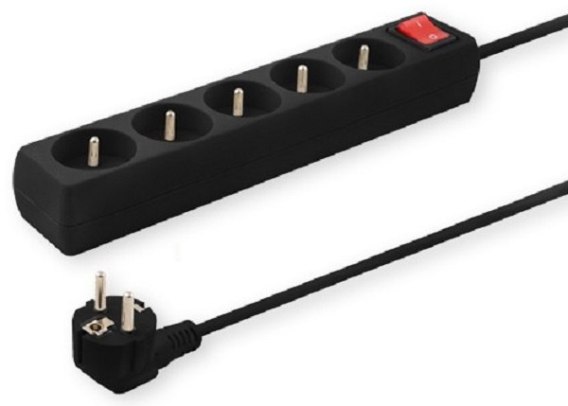 Listwa zasilająca wyposażona w 5 gniazd typu E. Posiada przewód o długości 3 m.