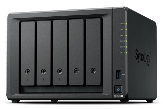 NAS Synology DS1525+, Tower, 5x 2.5"/3.5" SATA + 2x M.2 2280 NVMe SSD, AMD Ryzen V1500B, 8GB DDR4 (max.32GB), 2x 2.5GbE RJ-45, 2
