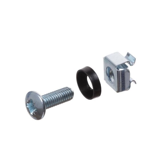 Komplet śrub, pakowanych po 4 sztuki, Stosowane do wszystkich typów szaf Netrack, stojących i wiszących, Przeznaczone do montowania elementów w belkach rackowych