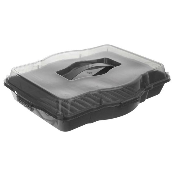 Praktyczny pojemnik do przechowywania, przenoszenia oraz podgrzewania żywności. Pojemnik ma wymiary 45 x 35 x 9,5 cm. Wymiary wewnętrzne pojemnika to 40,3 x 32 x 6 cm. Wykonany z wysokiej jakości tworzywa w szarym kolorze. Wyposażony w pokrywkę, która posiada wygodny uchwyt do przenoszenia. Pojemnik jest szczelny, zamykany na cztery klipsy. Dzięki pojemnikowi możemy w bezpieczny sposób transportować przygotowane ciasta, ciasteczka, kanapki oraz przekąski. Podczas spotkań w ogrodzie pojemnik ochroni potrawy i ciasta przed owadami. Niezwykle odporny na temperatury od -25°C do +95°C. Nadaje się do mycia w zmywarce do naczyń. Oryginalny produkt czeskiej marki Orion. Wyprodukowano zgodnie z europejskimi standardami.