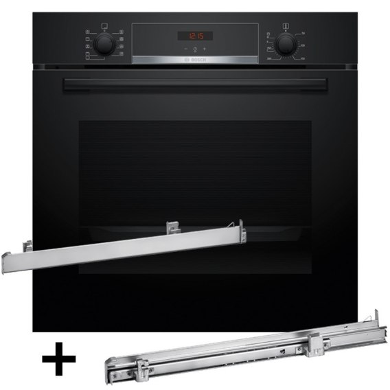 Piekarnik BOSCH HBA514BB3 + prowadnice teleskopowe 1 poziomowe BOSCH HEZ538000