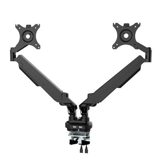 Regulowany uchwyt na 2 monitory, 2-9KG, mocowanie na zacisk, 17"-32", USB HUB, 75x75/100x100, czarny