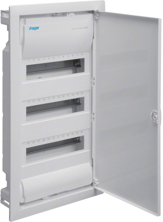 Rozdzielnica podtynkowa z drzwiami metalowymi, 4 rzędy, 48 modułów, IP30, QC, HAGER Volta VU48AT