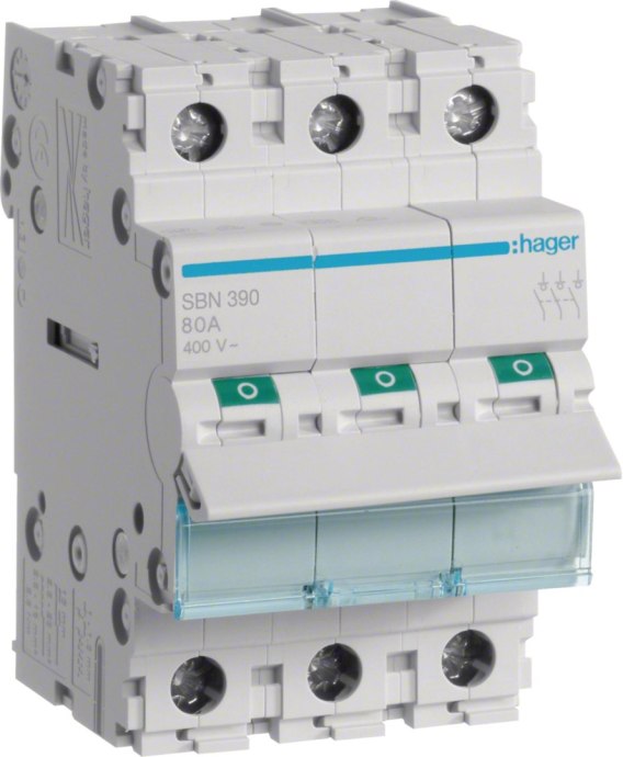Rozłącznik izolacyjny, szer. 3 moduły. 3P, 100A HAGER SBN390