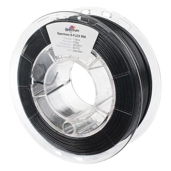 Spectrum S-Flex 90A to filament przeznaczony do druku 3D umożliwiający wytwarzanie elastycznych elementów w znacznie prostszy sposób niż w przypadku innych materiałów tego typu. Odpowiedni skład tego materiału zapewnia dobrą adhezję nie tylko między warstwami, ale także pomiędzy drukowanym elementem i platformą roboczą.