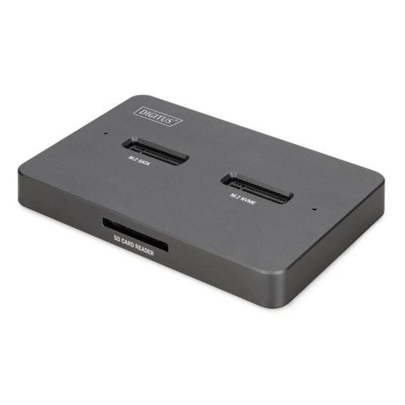 Stacja dokująca DIGITUS USB-C 3.2 Gen2 dla dysków SSD M.2 Duo NVMe oraz SATA (max. 2x 4 TB) z czytnikiem kart SD-Express 7.1 (ma