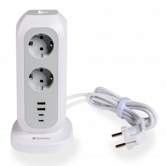 Stacja zasilania Tower Power gniazdo, biała, Verbatim