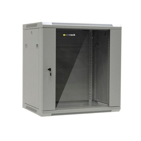 Szafa wisząca 19" Netrack, 12U/600x450mm - szary, drzwi szklane, otwierane boki