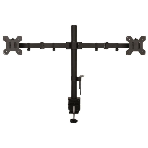 Uchwyt biurkowy na dwa monitory. Przeznaczony do monitorów o przekątnej ekranu od 13 do 27 cali. Maksymalne obciążenie wynosi 20 kg.
