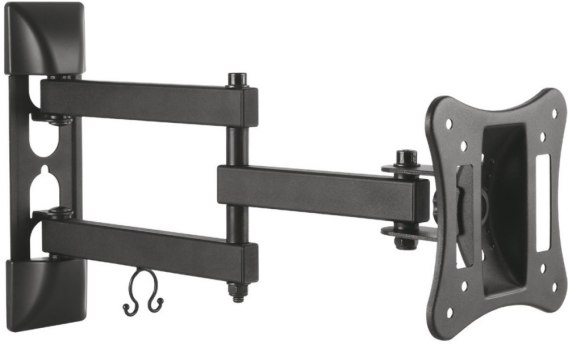 Uchwyt dedykowany dla TV oraz monitorów, o przekątnej ekranu od 13 do 27-cal. Nośność: 15 kg. Regulacja stopnia nachylenia od plus 20 do minus 20 stopni. Regulacja w poziomie do 180 stopni. Standard VESA: 50 x 50, 75 x 75, 100 x 100.