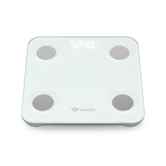 Waga diagnostyczna bluetooth TrueLife FitScale W1 BT biała kolorowy LCD 0,2 ~ 180 kg iOS, Android