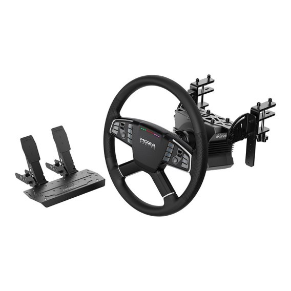 Poznaj profesjonalny zestaw symulacyjny MOZA Racing RS071, stworzony z myślą o miłośnikach ciężarówek i wymagających graczach, którzy oczekują realizmu na najwyższym poziomie. W jego skład wchodzi wyjątkowa kierownica TSW o średnicy 400 mm, precyzyjna baza R5 z bezpośrednim napędem o momencie 5,5 Nm, stalowe pedały SR-P Lite oraz zaciski Moza Racing. Całość została zaprojektowana z niezwykłą dbałością o detale. To kompletny zestaw do symulacji jazdy, który gwarantuje niezrównaną precyzję, trwałość i komfort - niezależnie od tego, czy pokonujesz górskie trasy ciężarówką, czy walczysz o podium w wirtualnych wyścigach.