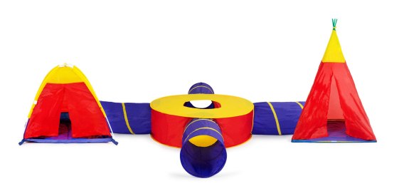 Zestaw 7 różnych namiotów, połączonych w jeden duży plac zabaw to doskonały sposób na zabawę na świeżym powietrzu. Dzięki uniwersalnej konstrukcji, możliwość konfiguracji i łączenia elementów jest nieograniczona. Każda część placu zabaw może być używana osobno, dlatego jest on idealny zarówno do domu jak i ogrodu. Jest to świetna zabaw nawet dla kilku dzieci, świetnie sprawdza się podczas urodzin gdy dzieci mogą bawić się razem.
