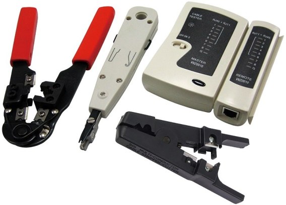 Zaciskarka do kabli, Narzędzie uderzeniowe LSA, Narzędzie do ściągania izolacji, Tester okablowania LAN