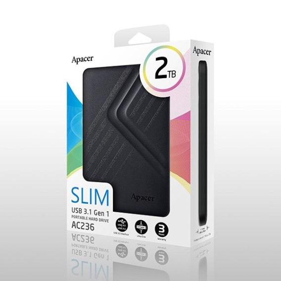 Apacer zewnętrzny dysk twardy, AC236, 2.5", USB 3.0 (3.2 Gen 1), 2TB, AP2TBAC236B-1, czarny