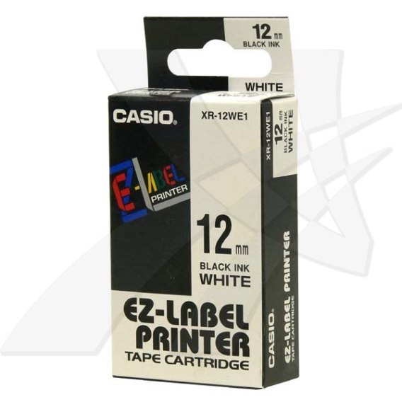 Casio oryginalny taśma do drukarek etykiet, Casio, XR-12WE1, czarny druk/biały podkład, nielaminowany, 8m, 12mm