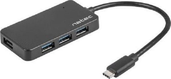 Hub wyposażony w 4 złącza USB 3.0. Produkt posiada interfejs USB typu C.