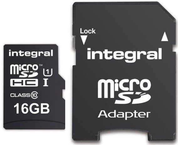 Karta pamięci microSDHC o pojemności 16 GB. Klasa prędkości: 10. W zestawie z adapterem.