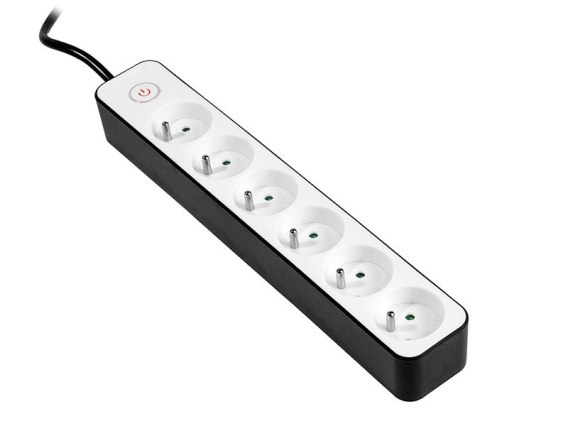 Listwa przeciwprzepięciowa z 6 gniazdami. Długość kabla (m): 1.5.