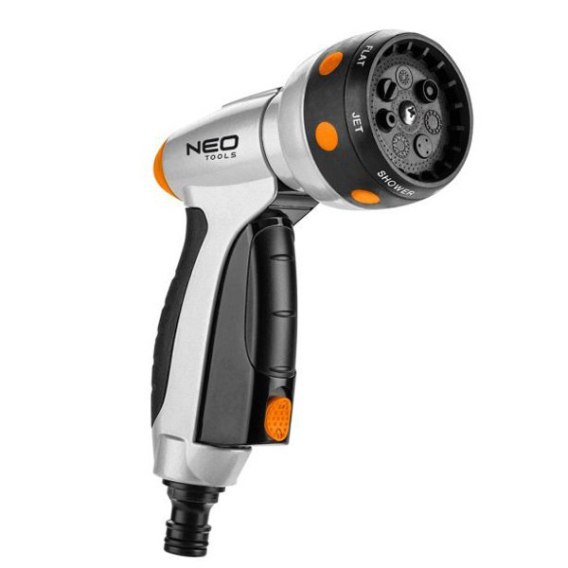 NEO TOOLS Zraszacz pistoletowy 7 funkcji, blokada spustu, pomarańczowo-czarna, 15-706