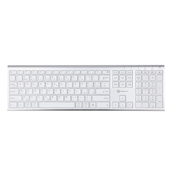 Powerton UltraSlim, Klawiatura CZ/SK, Multi-Device typ 2.4 GHz Dongle + Dual Bluetooth, bezprzewodowa, srebrna