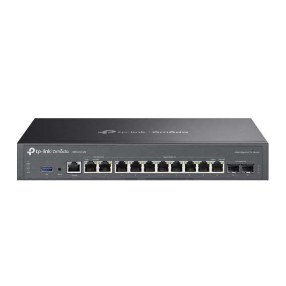 Router TP-Link ER7412-M2 jest idealnym rozwiązaniem dla zaawansowanych użytkowników, wymagających najwyższej wydajności i niezawodności. Wyposażony w czterordzeniowy procesor o taktowaniu 2,0 GHz, zapewnia szybkie i stabilne przetwarzanie danych, co przekłada się na płynne działanie nawet w najbardziej wymagających środowiskach sieciowych. Router posiada aż 10 gigabitowych portów WAN/LAN, w tym 2 porty SFP oraz 8 portów RJ45, które umożliwiają szybkie połączenie z wieloma urządzeniami. Dzięki 2 portom 2,5G RJ45 WAN/LAN, router oferuje elastyczność konfiguracji i umożliwia korzystanie z ultraszybkich połączeń internetowych. Dodatkowo, port USB 3.0 pozwala na podłączenie pamięci masowej USB lub wykorzystanie modemu LTE jako łącza zapasowego, co zapewnia ciągłość działania sieci. Router obsługuje do 11 portów WAN, co pozwala na maksymalne wykorzystanie wielu łącz szerokopasmowych dzięki funkcji równoważenia obciążenia pasma Multi-WAN. To idealne rozwiązanie dla firm, które chcą zapewnić sobie niezawodność i wysoką przepustowość sieci. Bezpieczeństwo sieci jest priorytetem dzięki obsłudze zaawansowanych protokołów VPN, takich jak SSL, IPSec, GRE, WireGuard, PPTP, L2TP oraz OpenVPN. Router chroni przed atakami DoS, a także oferuje filtrowanie IP/MAC/URL, DPI oraz system wykrywania i zapobiegania włamaniom (IPS/IDS), co gwarantuje pełną ochronę danych. Całość można centralnie zarządzać przez aplikację Omada lub stronę internetową, co ułatwia konfigurację i monitorowanie sieci w czasie rzeczywistym. Ten router to idealne połączenie wydajności, elastyczności i bezpieczeństwa, sprawdzające się zarówno w małych firmach, jak i w zaawansowanych instalacjach domowych.