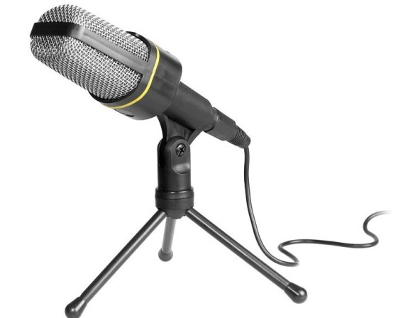 Mikrofon firmy Tracer z pokrętłem do regulacji głośności. Posiada 2-metrowy kabel oraz uniwersalny statyw.