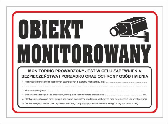 Tabliczka PCV Obiekt Monitorowany z RODO 35x25 cm