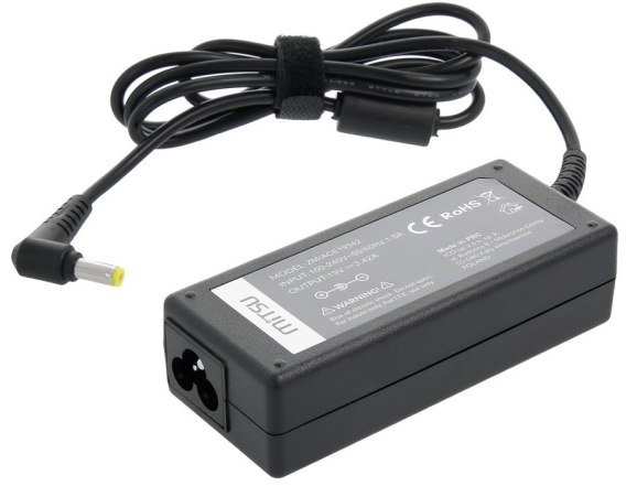 Zasilacz sieciowy do laptopa o mocy 65 W. Pasuje do wybranych modeli laptopów marki Acer oraz Packard Bell.